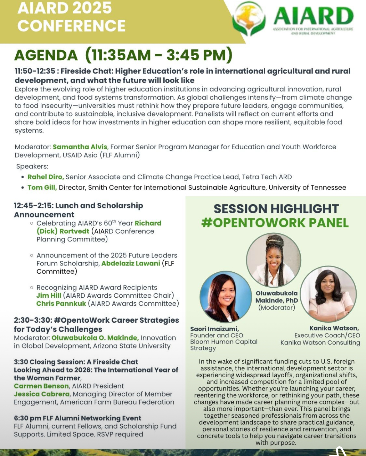 I have supported and coordinated government-funded initiatives across the U.S. Sub-Saharan Africa and Latin America, helping teams design results frameworks that strengthen local institutions in rural agriculture. At the heart of it all is my commitment to equity-centered research, where innovation reflects community realities, and where impact is measured not just in numbers, but in transformed lives.